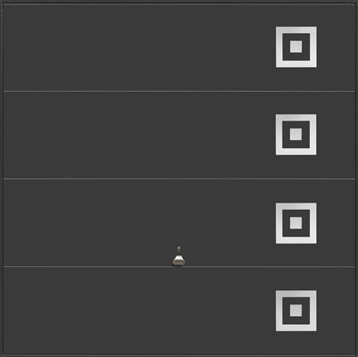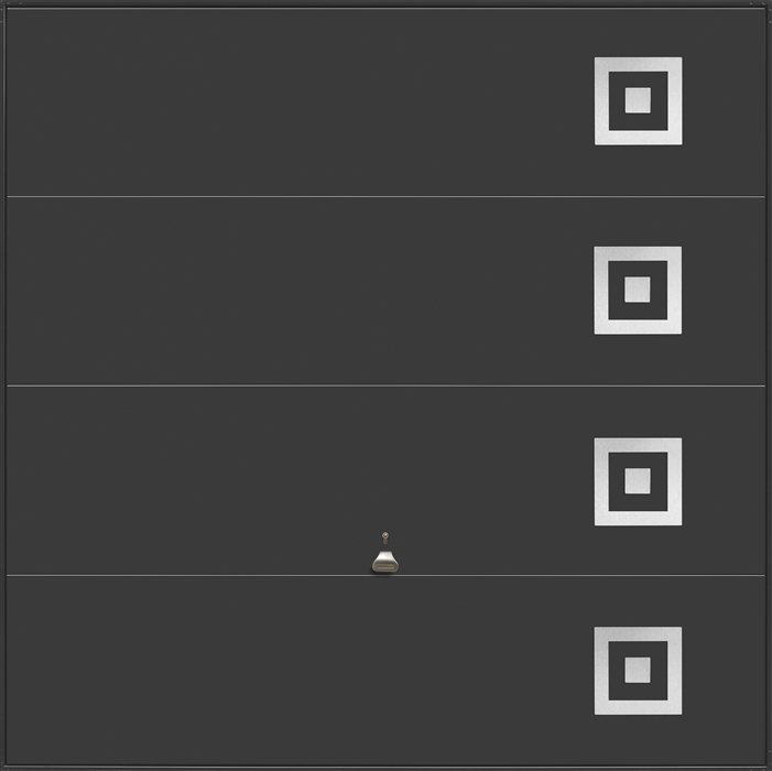 The Design Range 103 garage door offers a slick, minimalist up & over garage door panel design to suit modern and new build homes. The 103 incorporates the same innovative engineering and production techniques used to produce other Garador steel up & over garage doors, but provides a slick modern look. The 103 garage door model is constructed from 3 vertical skins and features geometrically inspired design elements, cut from 2mm thick brushed stainless steel and then applied to the door panel.