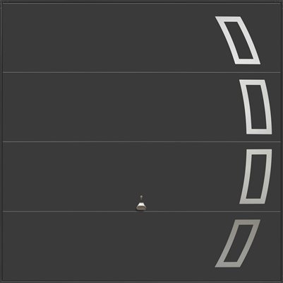 The Design Range 105 garage door offers a slick, minimalist up & over garage door panel design to suit modern and new build homes. The 105 incorporates the same innovative engineering and production techniques used to produce other Garador steel up & over garage doors, but provides a slick modern look. The 105 garage door model is constructed from 3 vertical skins and features geometrically inspired design elements, cut from 2mm thick brushed stainless steel and then applied to the door panel.