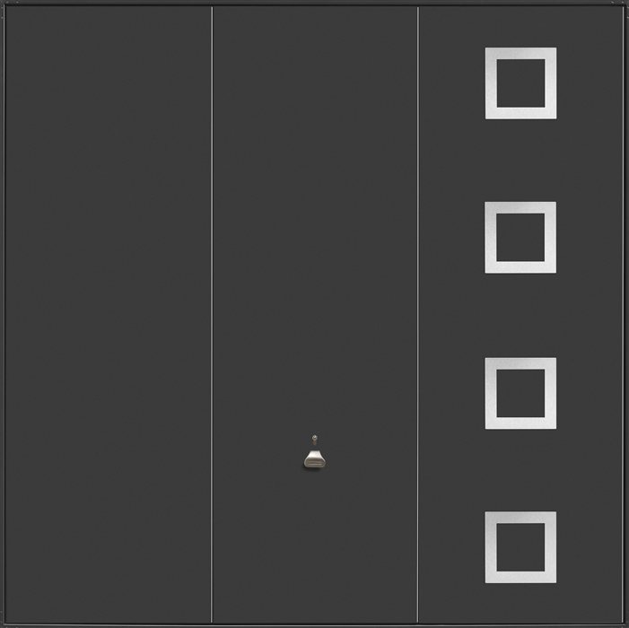 The Design Range 201 garage door offer a slick, minimalist up & over garage door panel design to suit modern and new build homes. The door incorporates the same innovative engineering and production techniques used to produce other Garador steel up & over garage doors and is constructed from 3 vertical skins. The simplicity of the design which incorporates 2mm thick brushed stainless steel squares, is perfect for homes with a very modern look and feel.