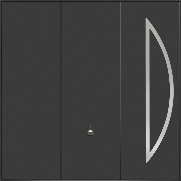 The Design Range 211 garage door offers a slick, minimalist up & over garage door panel design to suit modern and new build homes. It incorporates the same innovative engineering and production techniques used to produce other Garador steel up & over garage doors. The 211 series door is constructed from 3 vertical skins and a half arc design element which is cut out of 2mm thick brushed stainless steel and then applied to the door panel.