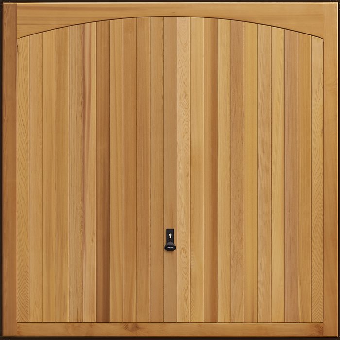 A traditional timber Up & Over garage door, made from solid red cedar for a beautiful natural look and a durable performance. With initial and regular staining, this timber door will keep its impressive appearance and last a lifetime.