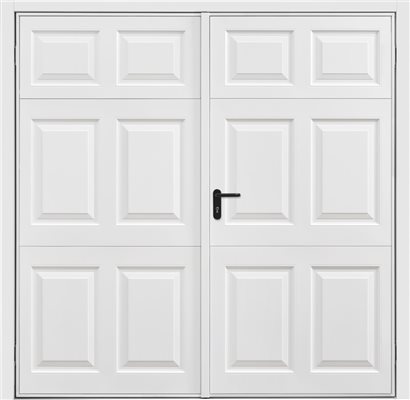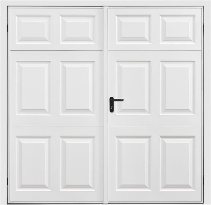 Garador's traditional Beaumont steel side hinged door combine robust and reliable performance with quick and simple access. These doors are fitted with a lever handle inside and out, providing users with easy access at all times. For added security, the option of an outside knob is available. This traditional door set up offers convenience and privacy over an up & over garage door where full width access is not generally required.