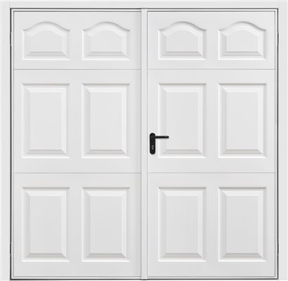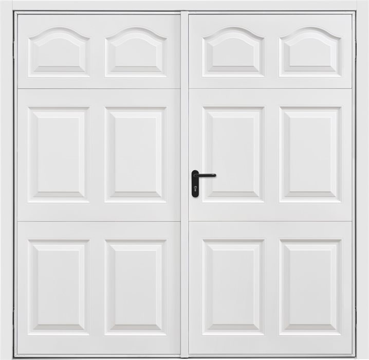 Garador's traditional Cathedral steel side hinged door combine robust and reliable performance with quick and simple access. These doors are fitted with a lever handle inside and out, providing users with easy access at all times. For added security, the option of an outside knob is available. This traditional door set up offers convenience and privacy over an up & over garage door where full width access is not generally required.