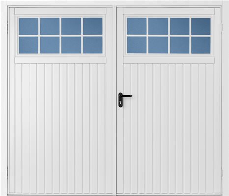 The Sailsbury steel side-hinged garage door offers an attractive and easy access solution for any garage. It comes with windows as standard allowing natural light inside your garage, without compromising on security or durability. The Salisbury version 1 is available in door width sizes up to 7'6" wide