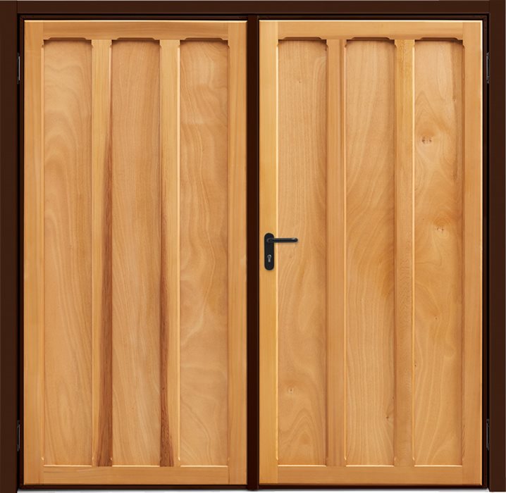 Garador's Seymour side hinged timber door combines a beautiful natural look with reliable performance. These doors are fitted with a lever handle inside and out, providing users with easy access at all times. For added security, the option of an outside knob is available. This traditional door set up offers convenience and privacy over an up & over garage door where full width access is not generally required.